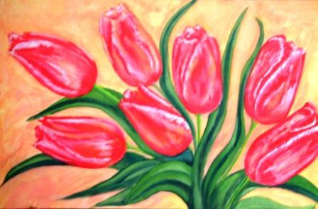 "Die Tulpen" - 100% handgemalt (inkl. Signatur) auf hochwertiger Leinwand, gemalt 2001