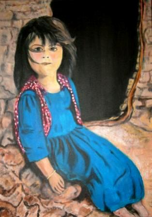 "Kurdisches Mädchen" - 100% handgemalt (inkl. Signatur) auf hochwertiger Leinwand, gemalt 1992