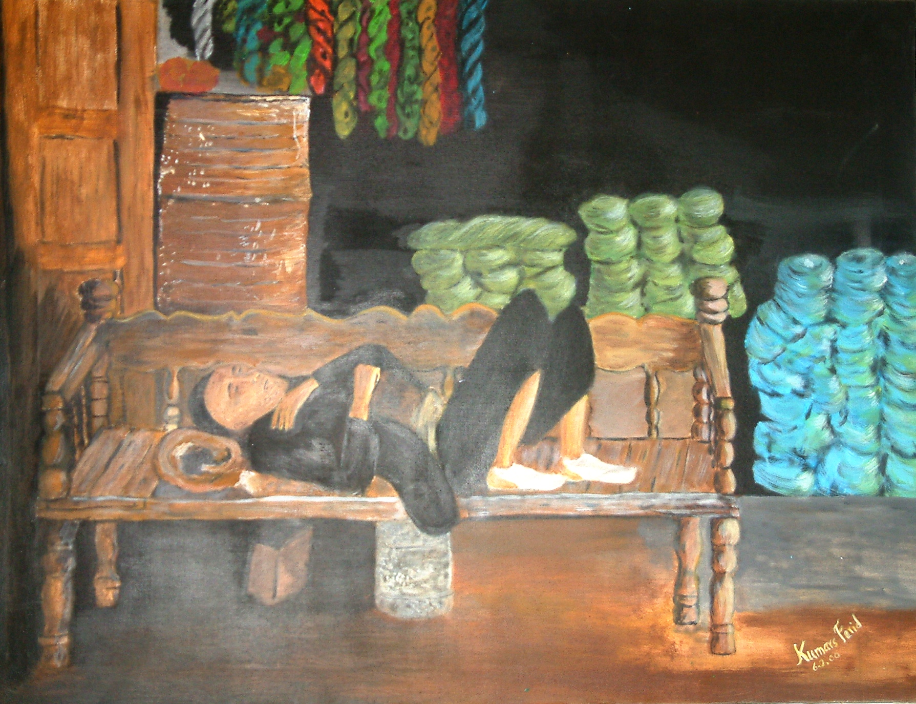 "In der Färberei" - 100% handgemalt (inkl. Signatur) auf hochwertiger Leinwand, gemalt 2000