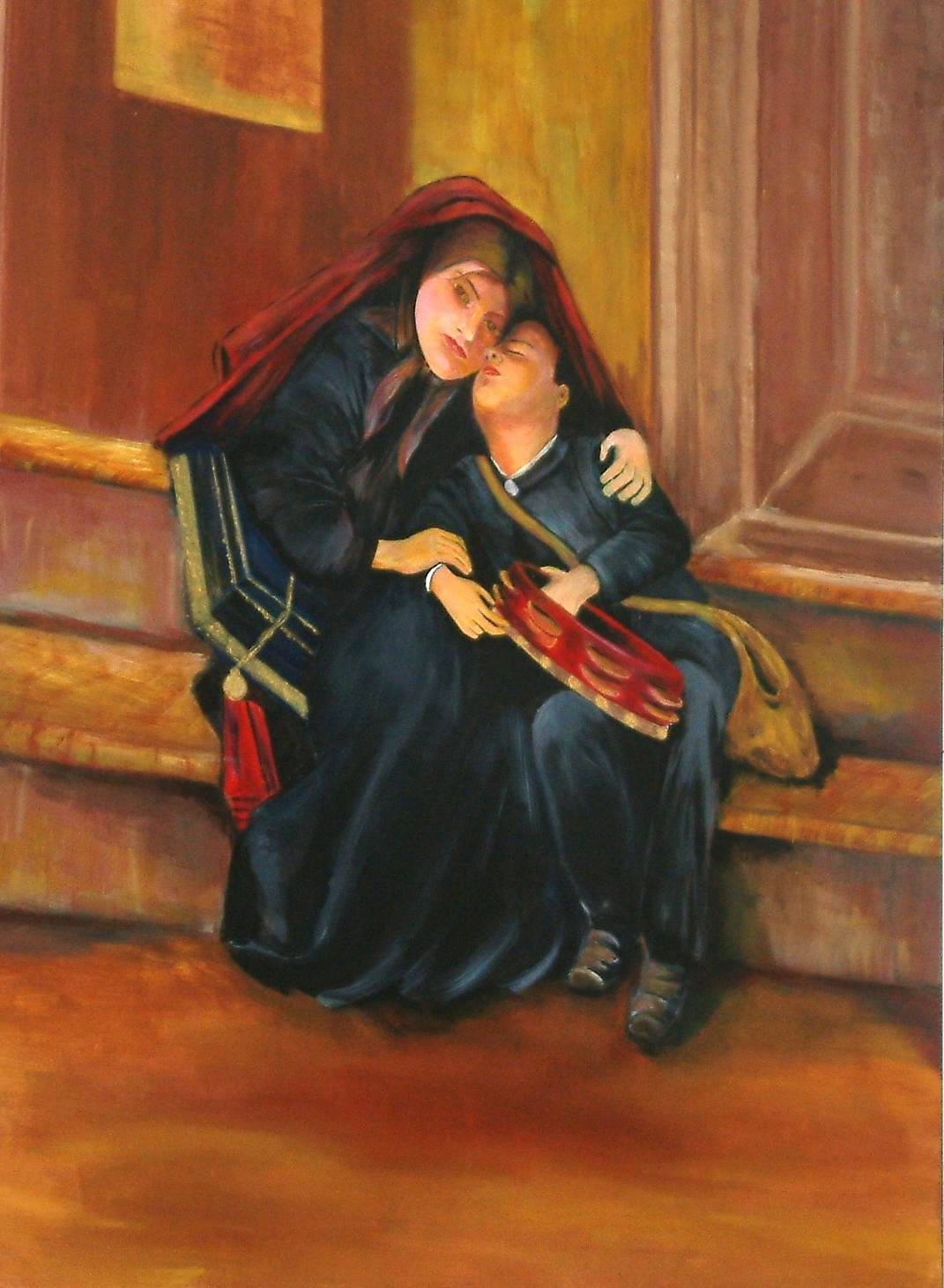 "Am Feuer" - 100% handgemalt (inkl. Signatur) auf hochwertiger Leinwand, gemalt 2004